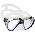 The raking of the lenses and the consequent shape of the skirt drastically reduce the internal volume of the mask which is similar to that of free diving models.